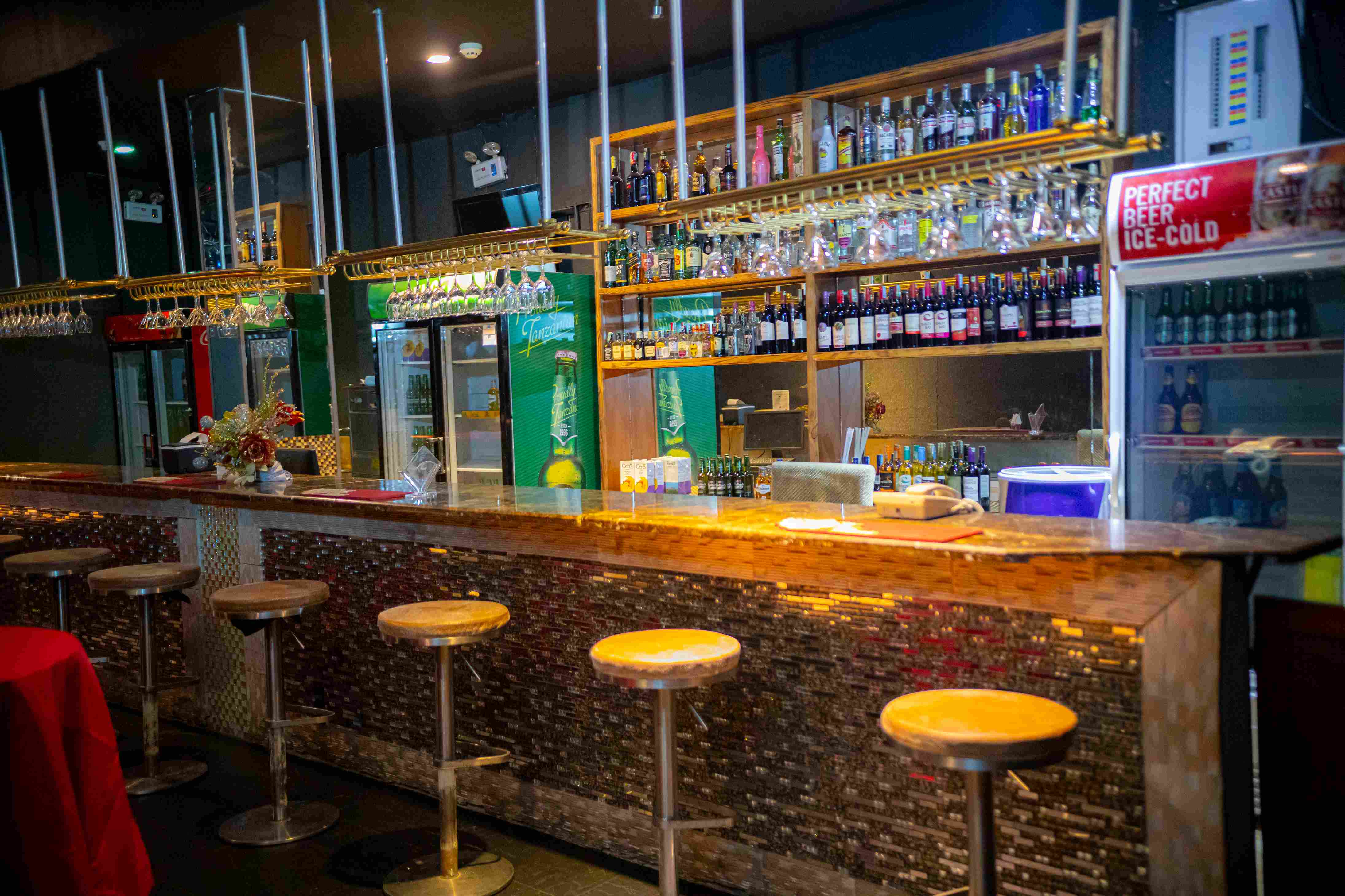 The Diamond Restaurant is located on the 2nd floor. Positioned as a premier, stylish and elegant Restaurant offers high quality, home -made, fresh tasty meals of continental, Tanzanian delicacy and International cuisines. The restaurant has intimate space in which to unwind and get together with Family & friends during wedding, Birthdays and Graduation etc. it is also perfect place for corporate Lunches & business meetings or working in peace and quiet environment . Capacity up to 200pax.