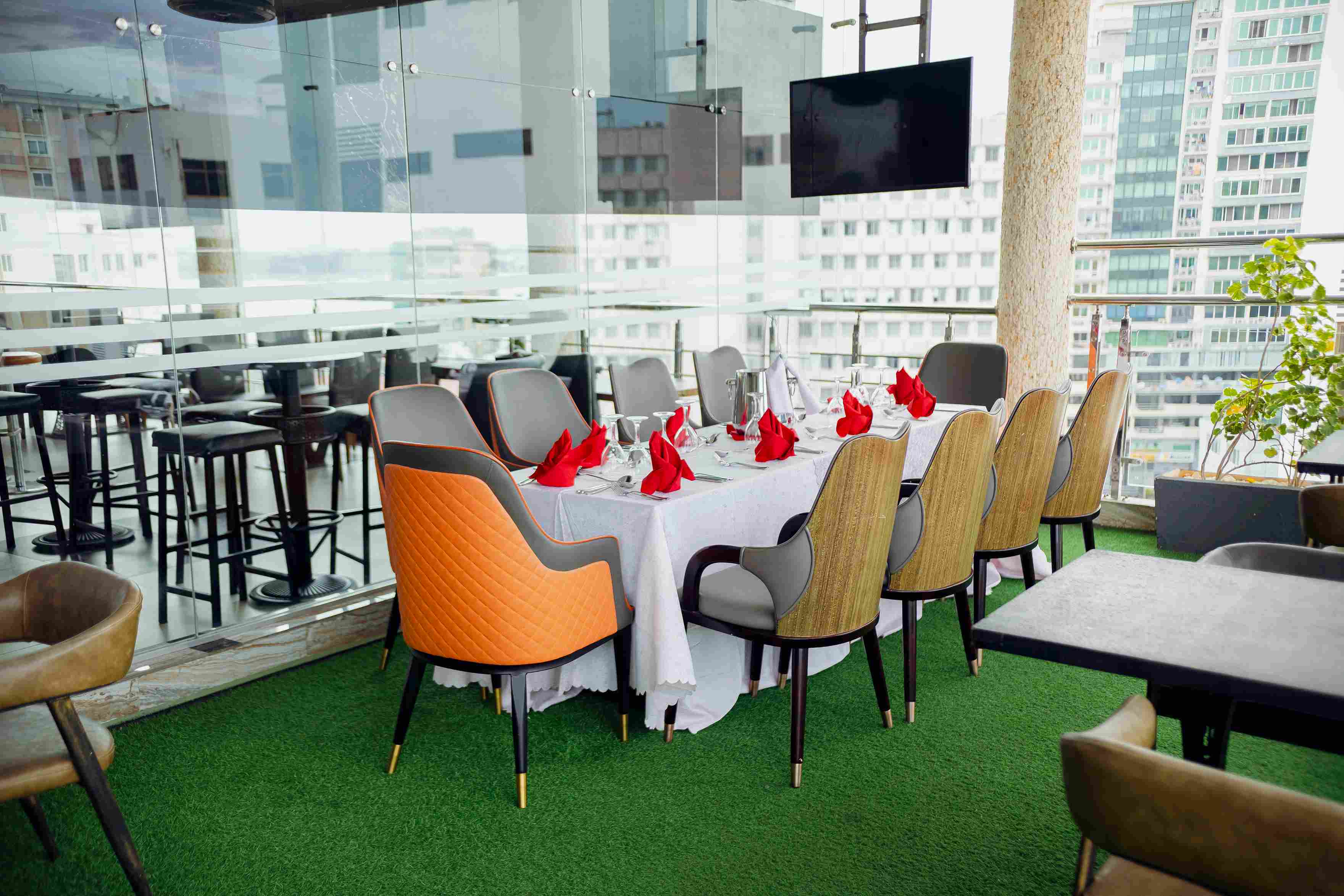 With the panoramic City or Ocean view to satisfying the guests with a wide range of beverages on our Roof top sports bar on the 9th floor a truly evolved selection of spirits, wines, cocktails, and food favorite of both local and foreign clientele with two separate environmental friendly smoking areas. We host Happy Hour everyday from 17:00hrs to 20:00hrs for both in-house and walk-in guests. Our roof top Opens from 12:00hrs to 23:00hrs.
